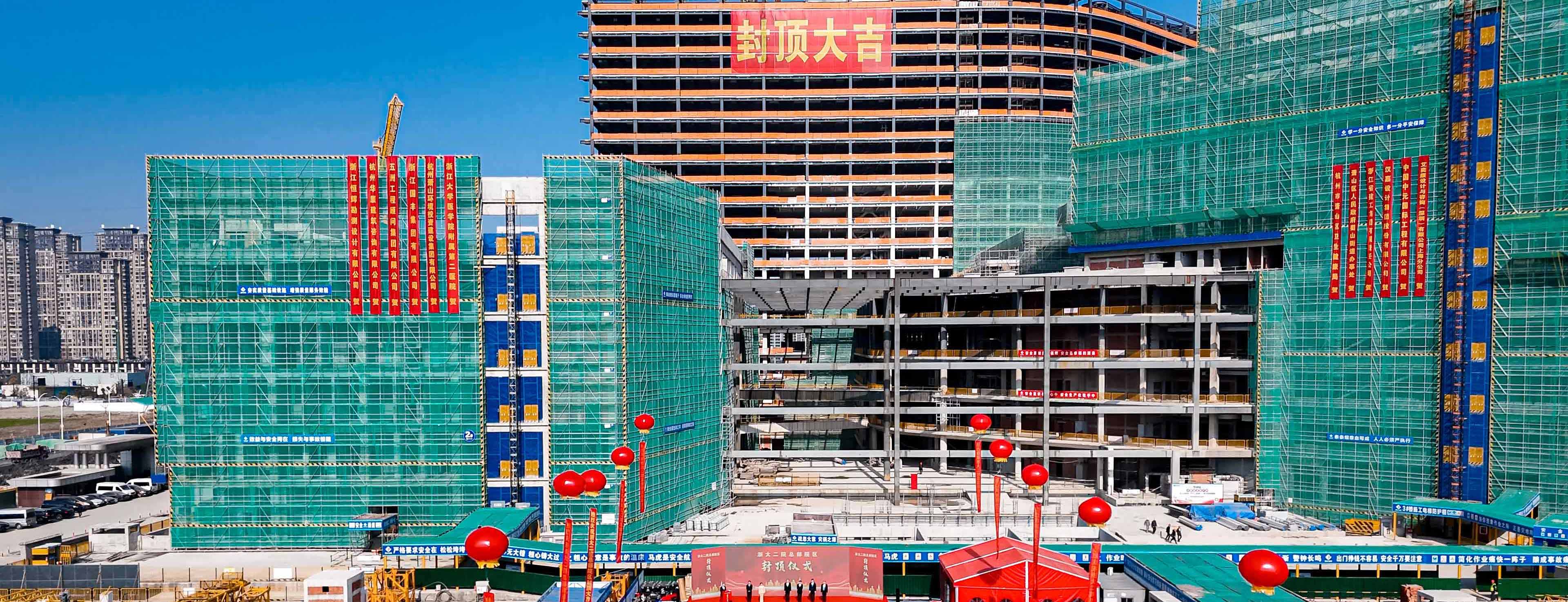 我集團(tuán)承建的浙大二院總部院區(qū)項(xiàng)目喜結(jié)金頂
